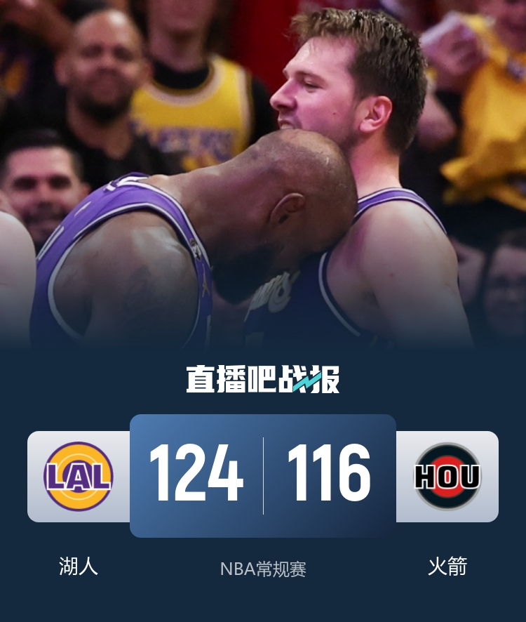 🏀湖人再胜火箭豪取7连胜 东契奇40+9+10 詹姆斯14中13砍30分