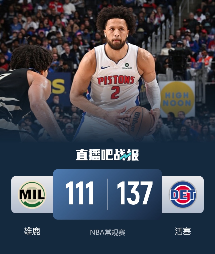 🏀活塞轻取雄鹿 坎宁安复出13+10 杜伦21+9 希姆斯三双