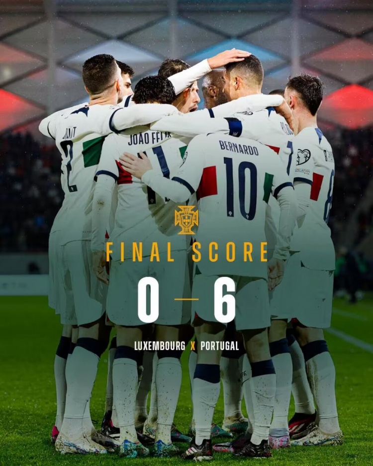 欧预赛-C罗连场双响B席传射莱奥传射+失点 葡萄牙6-0卢森堡两连胜