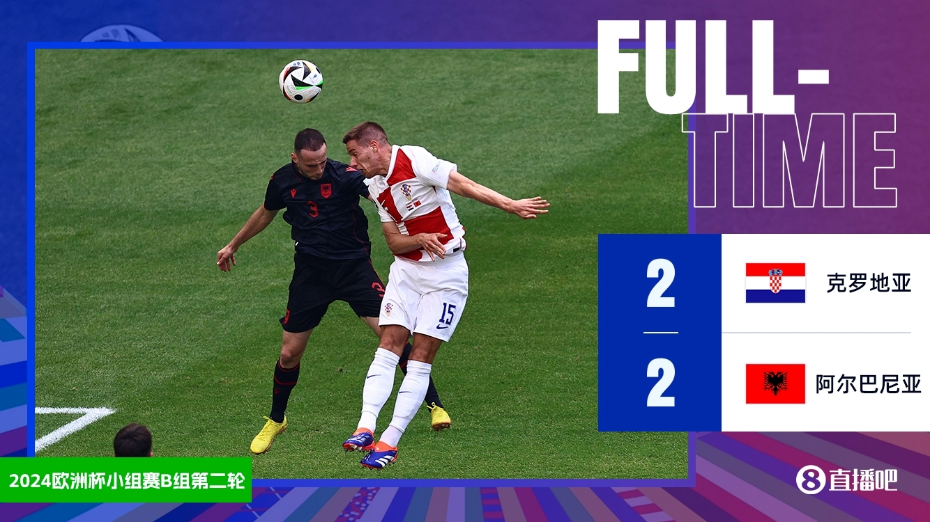 全场比赛结束,克罗地亚2-2阿尔巴尼亚。