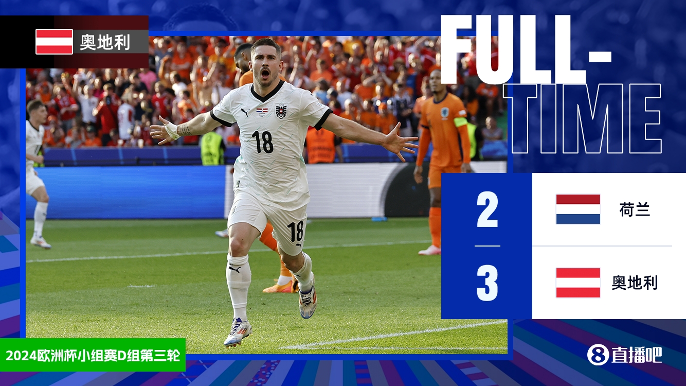 奥地利三度领先3-2荷兰力压法荷头名出线 荷兰4分小组第三晋级