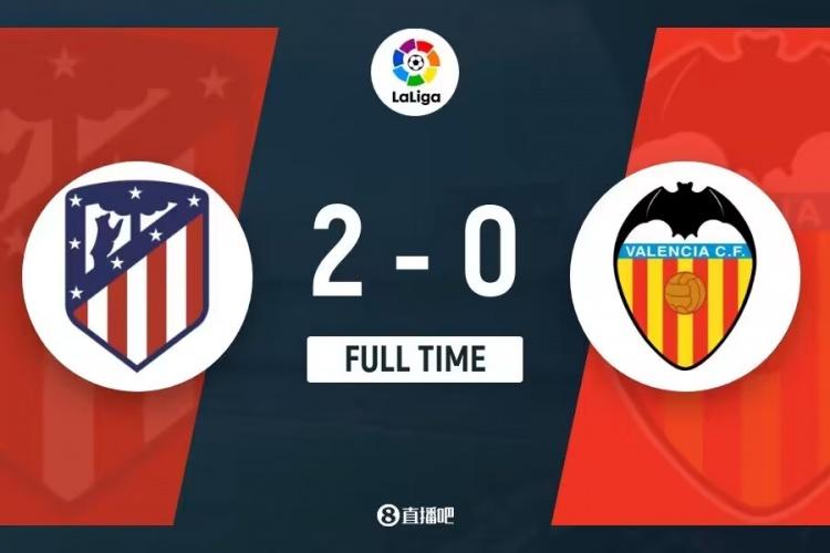 全场比赛结束,马竞2-0瓦伦西亚。