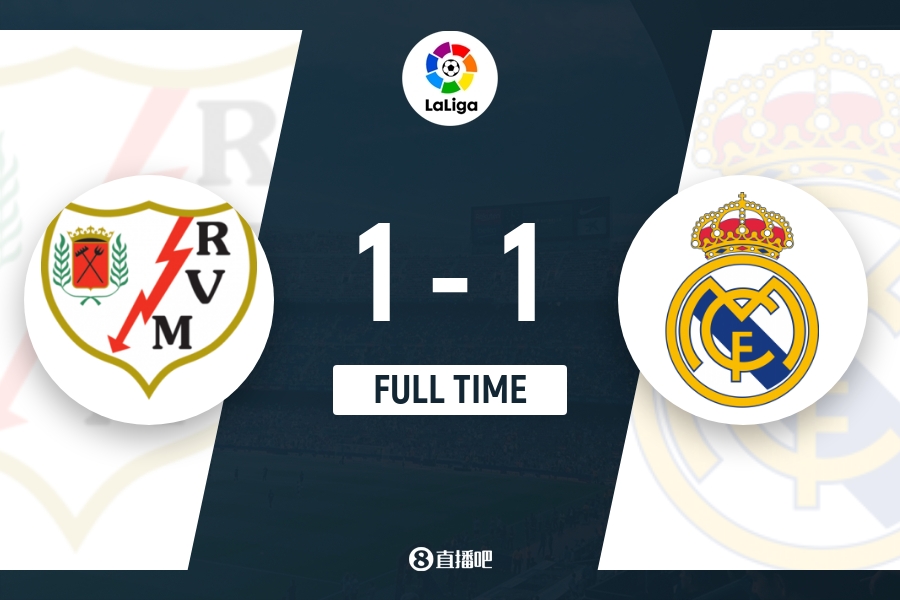 全场比赛结束,皇马1-1巴列卡诺。