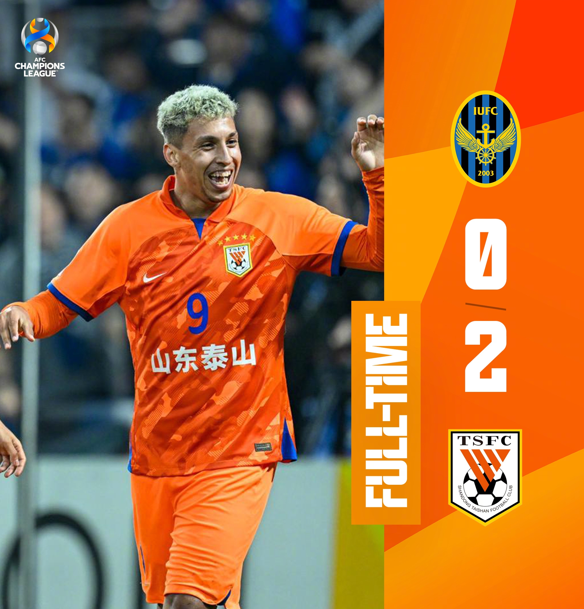 全场比赛结束,山东泰山客场2-0击败仁川联合。