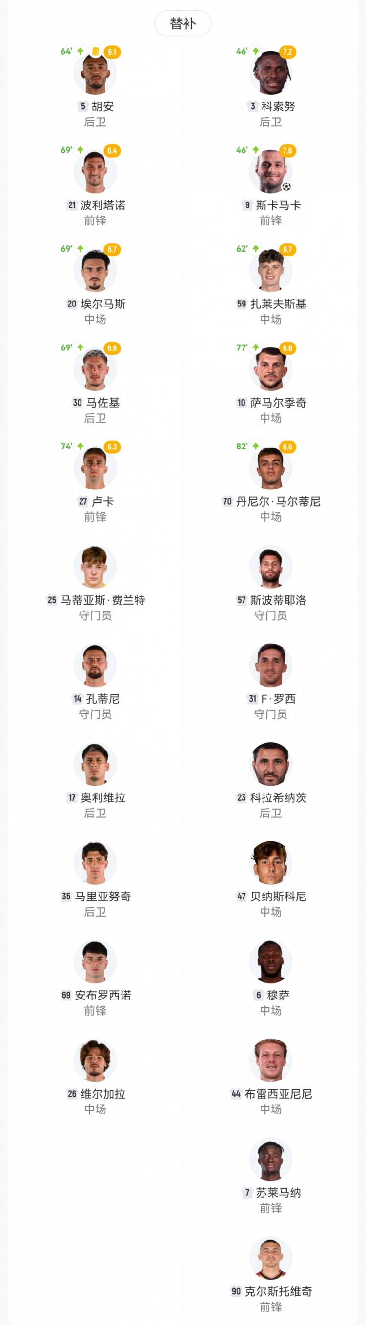【双方首发及换人信息】