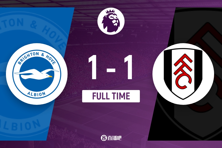 全场比赛结束,布莱顿1-1富勒姆。