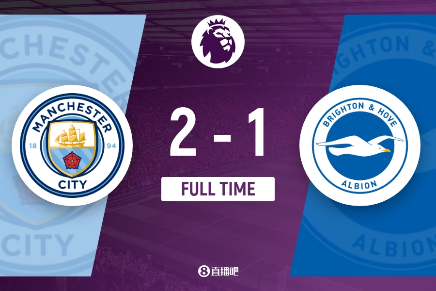 下半场伤停补时4分钟,全场比赛结束,最终曼城2-1布莱顿。