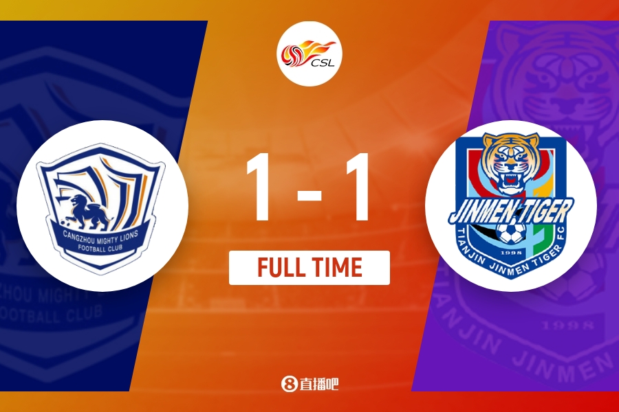 全场比赛结束,最终沧州雄狮1-1天津津门虎。