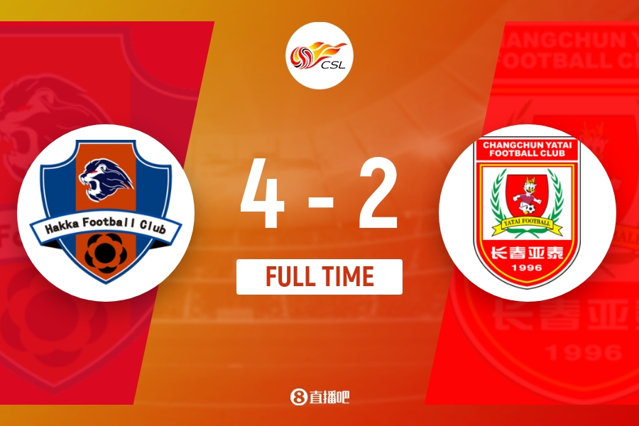 全场比赛结束,最终梅州客家4-2长春亚泰。