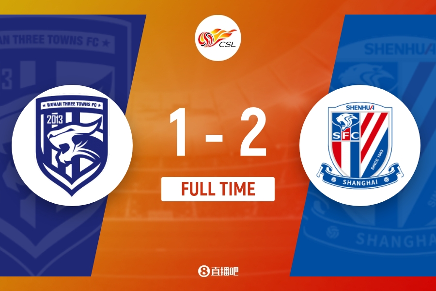 下半场补时8分钟。最终全场比赛结束,武汉三镇1-2上海申花。