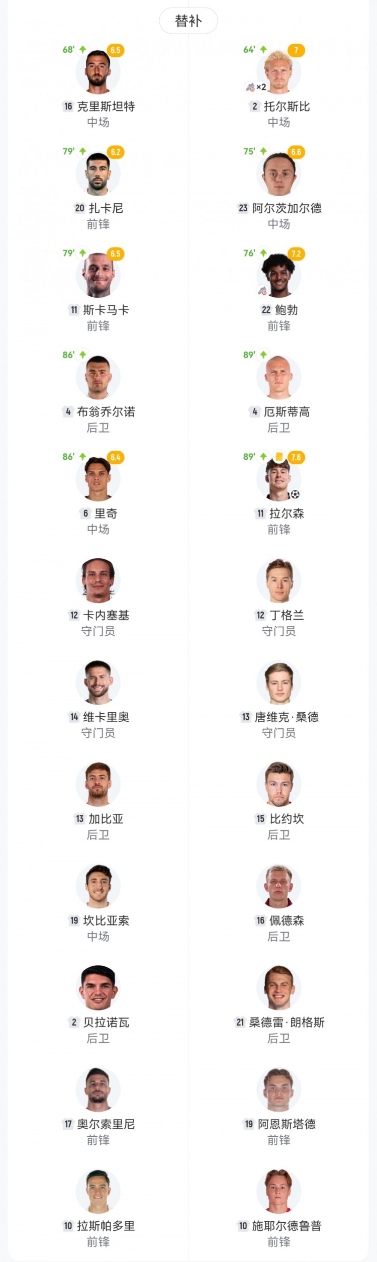 【双方首发及换人信息】