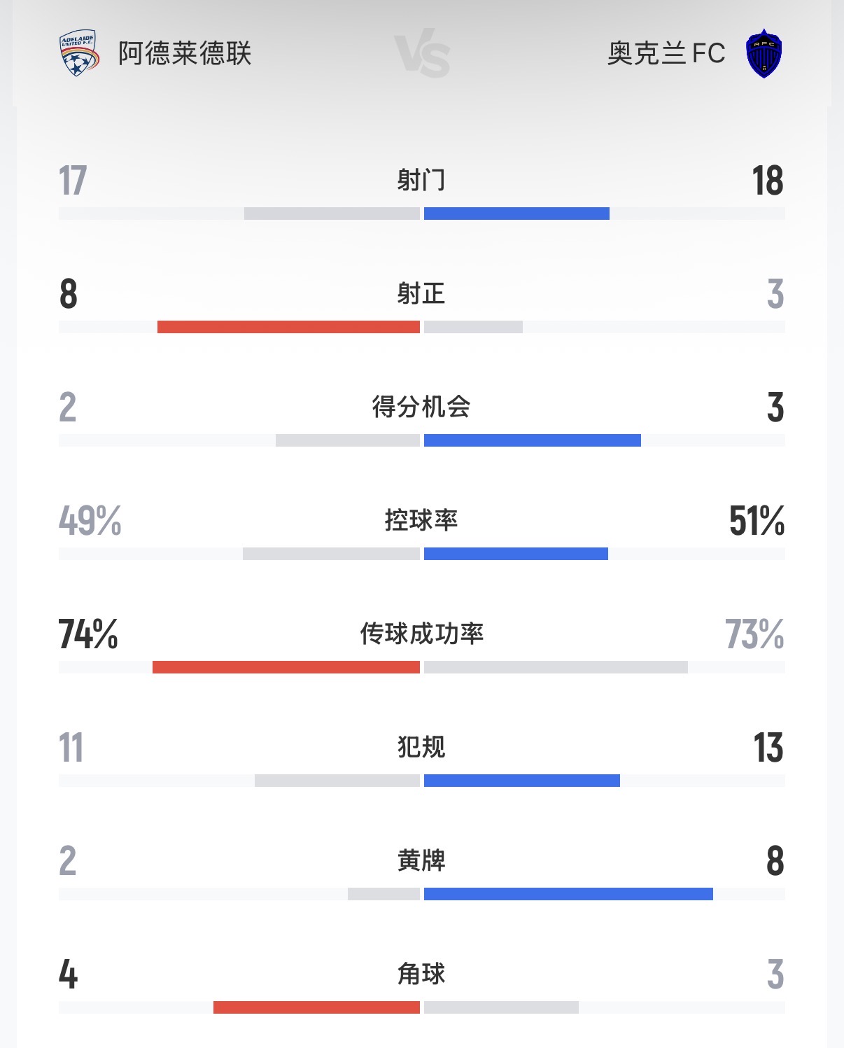 04月03日讯 北京时间16:35,澳超第23轮迎来一场强强对话,赛前积分榜暂排第4的阿德莱德联在主场库珀斯体育场对阵赛前暂排第2的奥克兰FC,上半场阿拉吉奇首开纪录,半场结束,主队阿德莱德联1-0奥克兰FC。下半场刚回来加列戈斯就打进一球为奥克兰FC扳平比分,此后两队再无进球,最终比分定格在阿德莱德联1-1奥克兰FC。