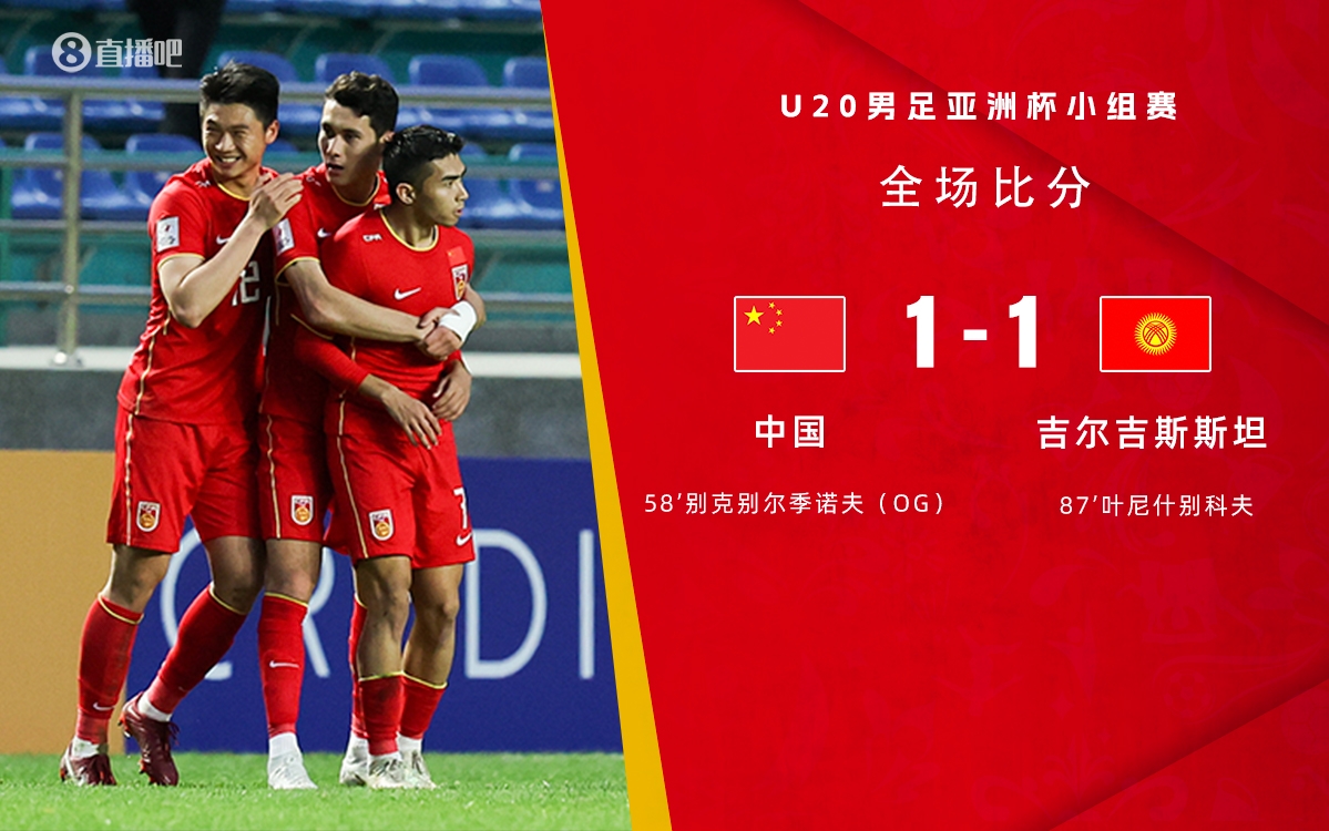 直播3月9日讯 北京时间3月9日下午20:00,U20男足亚洲杯D组末轮,中国对阵吉尔吉斯斯坦。上半场,艾菲尔丁率造险情。下半场,艾菲尔丁造关键乌龙,叶尼什别科夫扳平。全场结束,中国1-1吉尔吉斯斯坦。中国队1胜1平1负积4分排名小组第二成功出线,八强战将对阵C组第一韩国U20男足!这场比赛,将会在3月12日18:00上演。