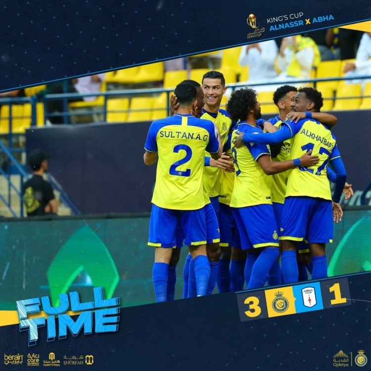 沙王冠-纳吉10秒闪击马兰破门C罗染黄 利雅得胜利3-1艾卜哈进4强