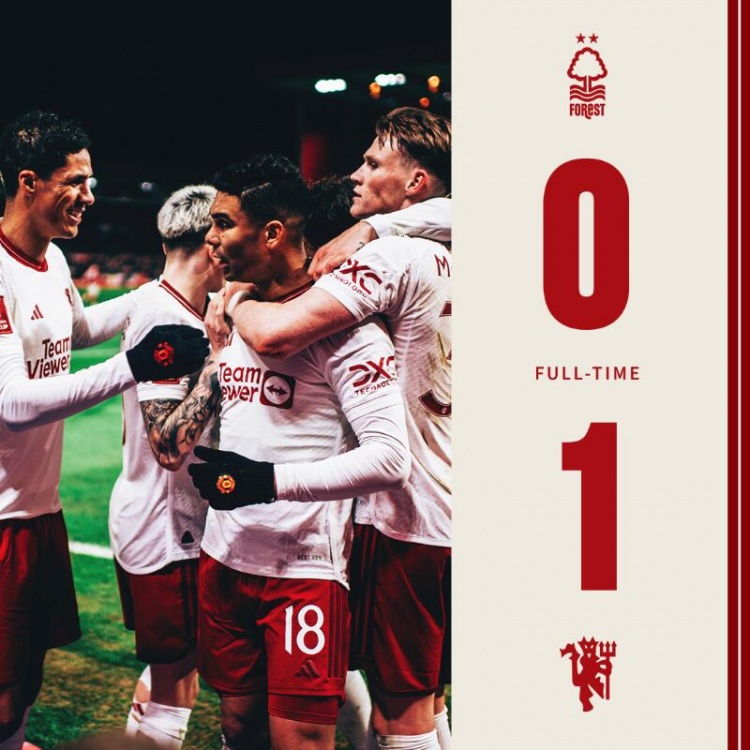 2月29日讯 足总杯第5轮,曼联客场对阵诺丁汉森林。上半场,安东尼远射中框,奥纳纳献精彩扑救。易边再战,卡塞米罗第89分钟绝杀制胜。曼联1-0森林晋级八强,将对阵利物浦与南安普顿间的胜者。