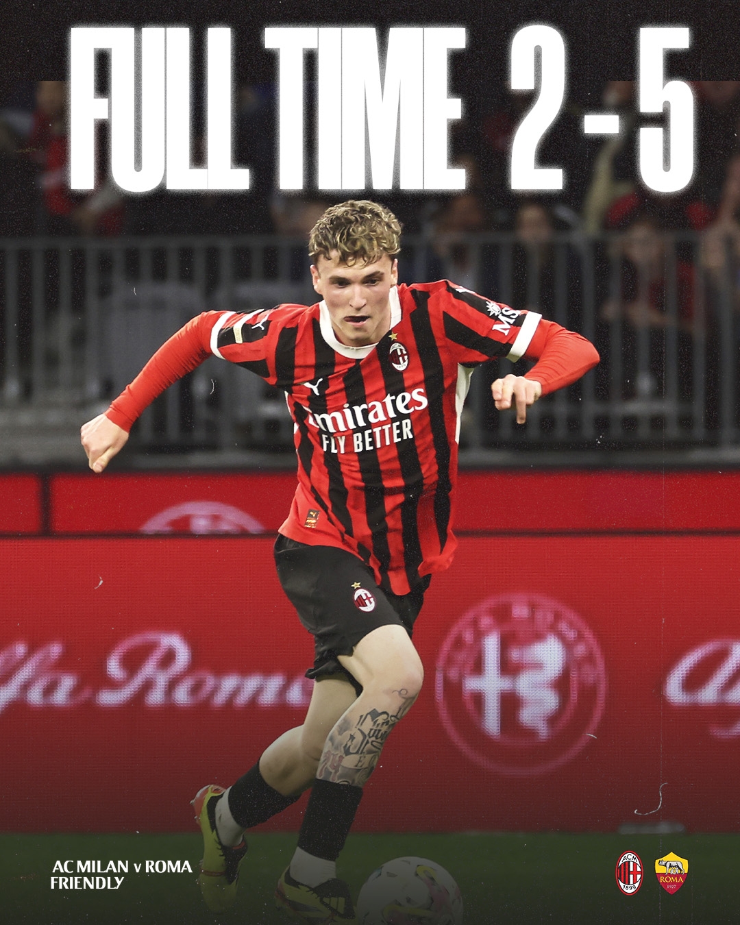 下半场补时3分钟,米兰2-5罗马。