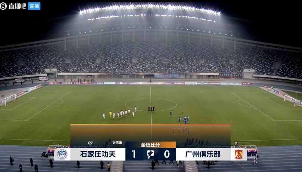 半场战罢,石家庄功夫暂0-0广州队。