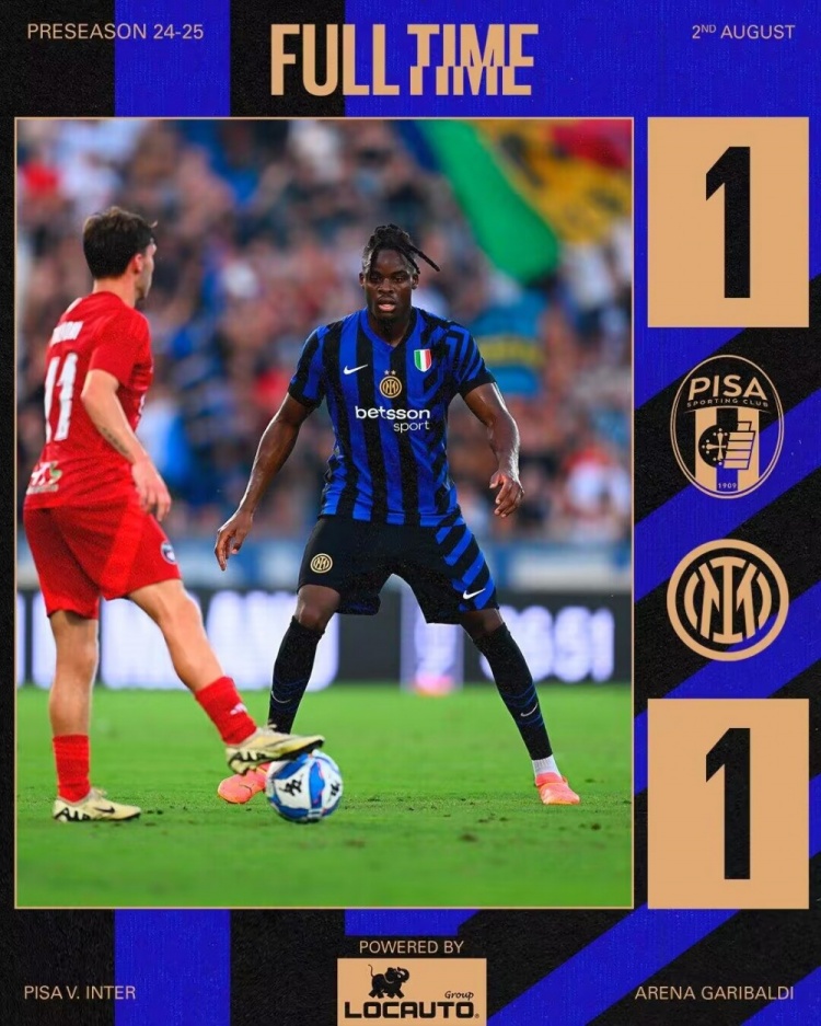 友谊赛-国米1-1绝平比萨,比塞克门前极限解围+读秒绝平