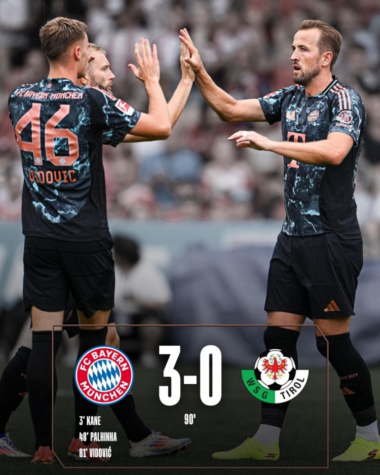 友谊赛-拜仁3-0华登斯季前赛三连胜 凯恩闪击帕利尼亚首球