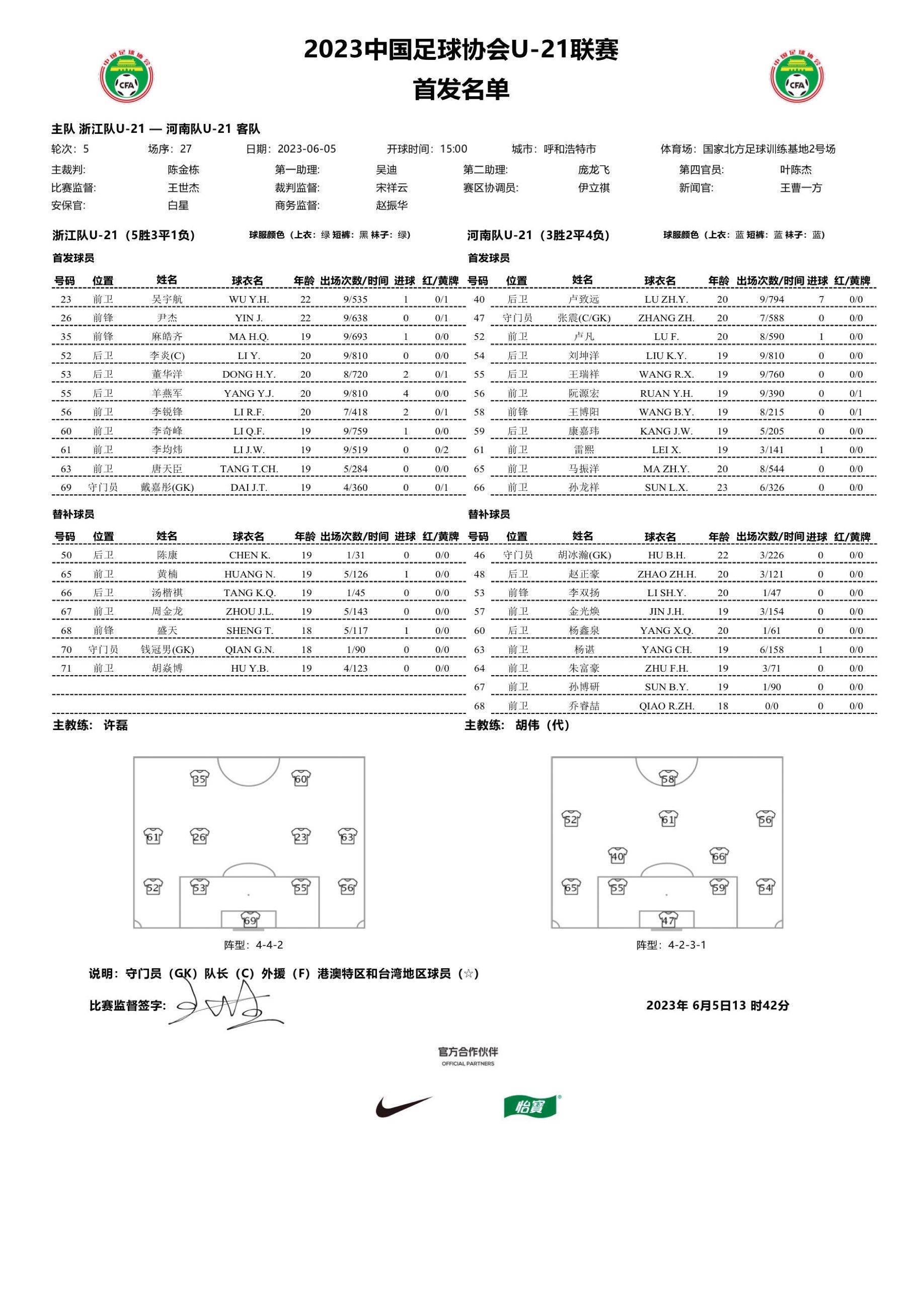 U21联赛:河南1-0浙江,朱富豪替补绝杀