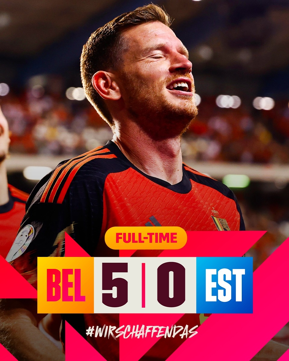 欧预赛-卢卡库2射1传,特罗萨德&CDK破门 比利时5-0大胜爱沙尼亚