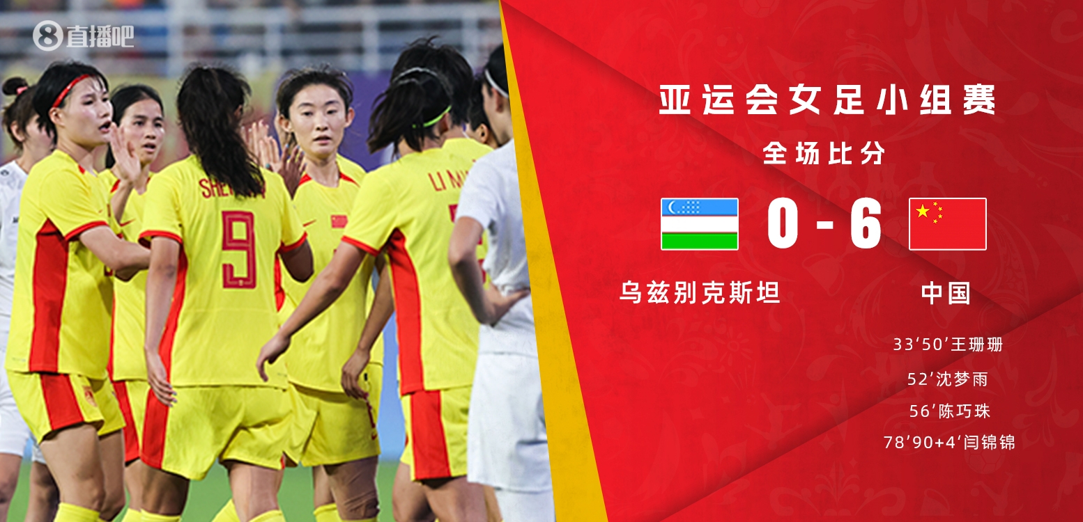亚运女足-中国6-0乌兹别克头名晋级将对阵泰国 女足两场净胜22球