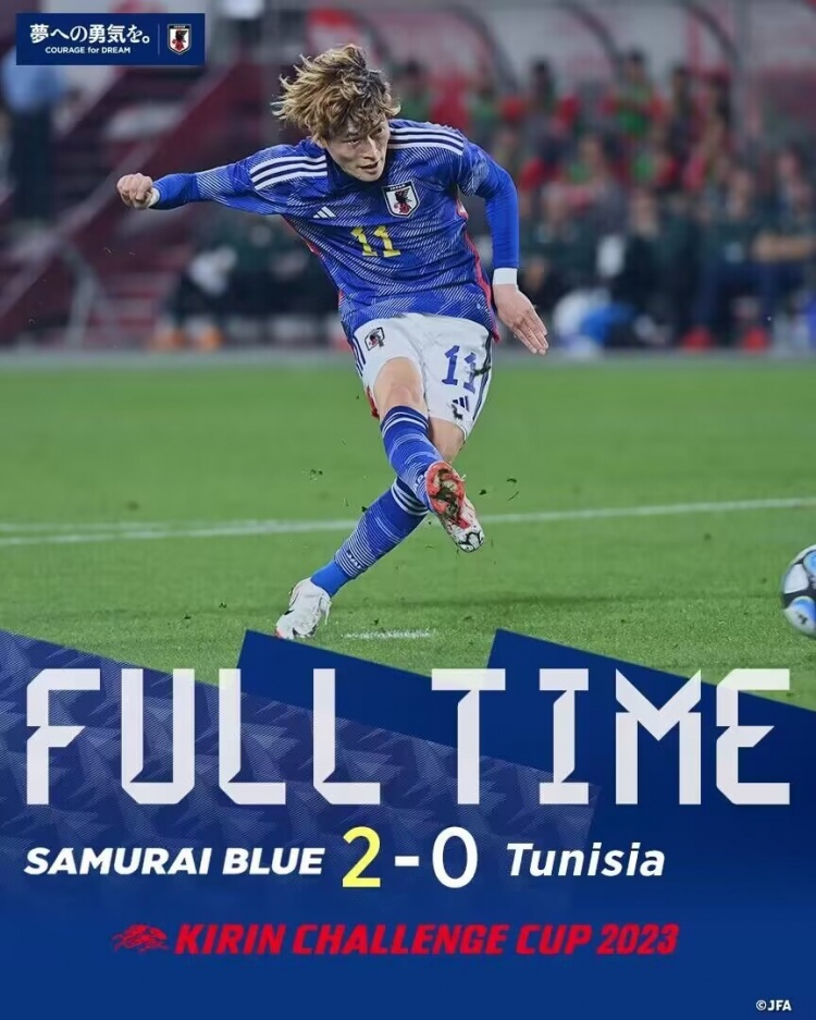 10月17日讯 北京时间10月17日晚上18:10,友谊赛,日本对阵突尼斯。上半场,古桥亨梧单刀破门。下半场,伊东纯也进球,上田绮世中柱。全场结束,日本2-0突尼斯,豪取友谊赛六连胜。
