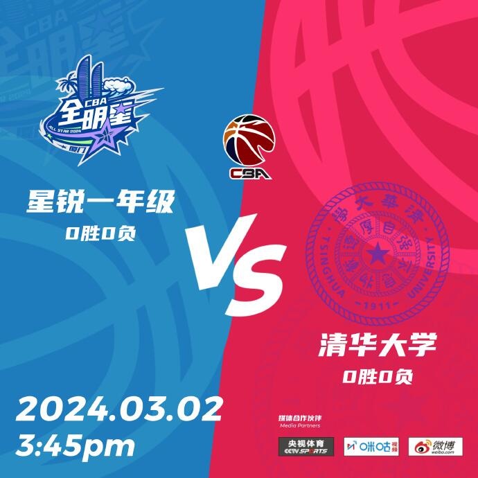 3月2日讯 CBA全明星新锐挑战赛,新锐一年级今天对阵清华大学男子篮球队,比赛采用四节次、单节10分钟的模式。