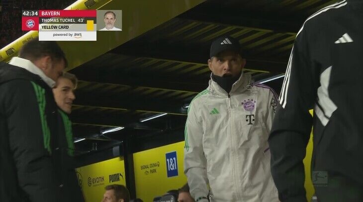 第22分钟,萨内拉倒罗伊斯,吃到黄牌。