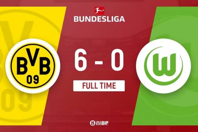 全场比赛结束,多特蒙德5-0沃尔夫斯堡。