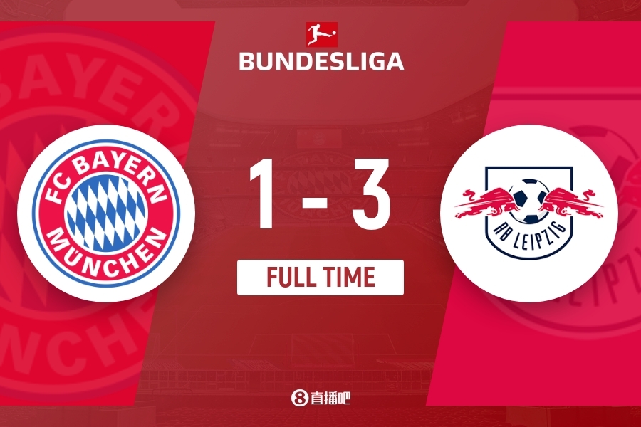 伤停补时5分钟。全场比赛结束,拜仁1-3莱比锡。