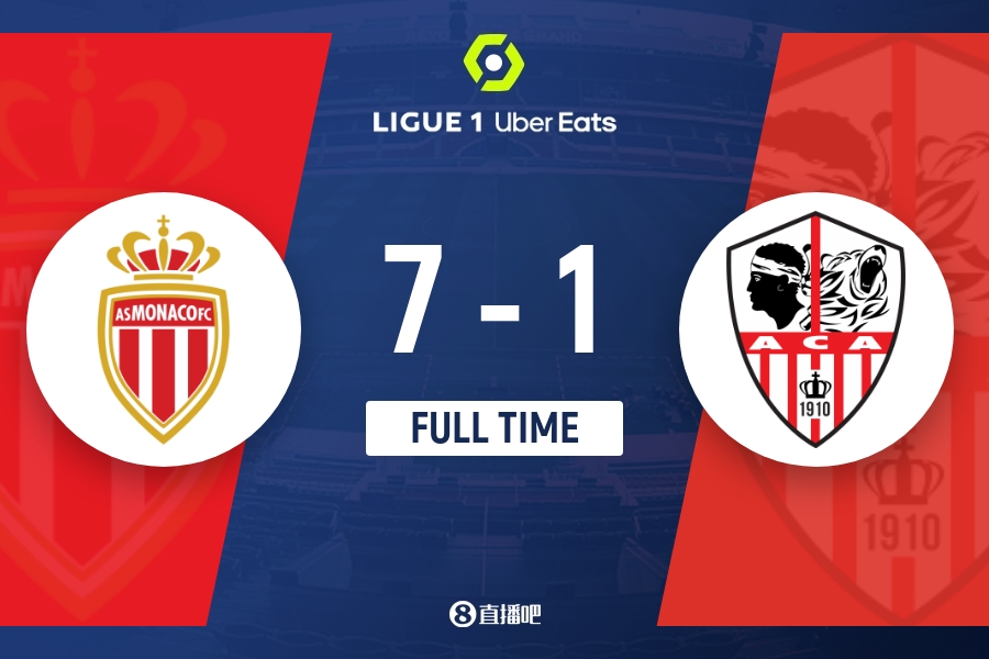 法甲-本耶德尔戴帽恩博洛双响 摩纳哥7-1狂胜阿雅克肖