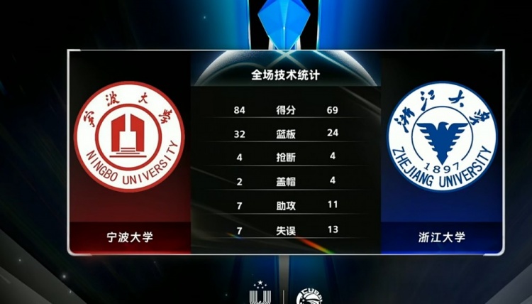 末节决战双方上来都命中自己的第一波进攻,不过宁波大学效率更高,林炜杰和李一帆连续抓反击拿分稳住两位数领先;不过顽强的浙江大学靠着姚宇航连续上篮得手保持着希望;但下半场不怎么得分的王凡懿命中关键三分,浙江大学打的很顽强但就是没办法起势抢分,宁波大学一直稳守10分以上的领先保持到最后。最终,宁波大学84-69击败浙江大学迎来开门红。