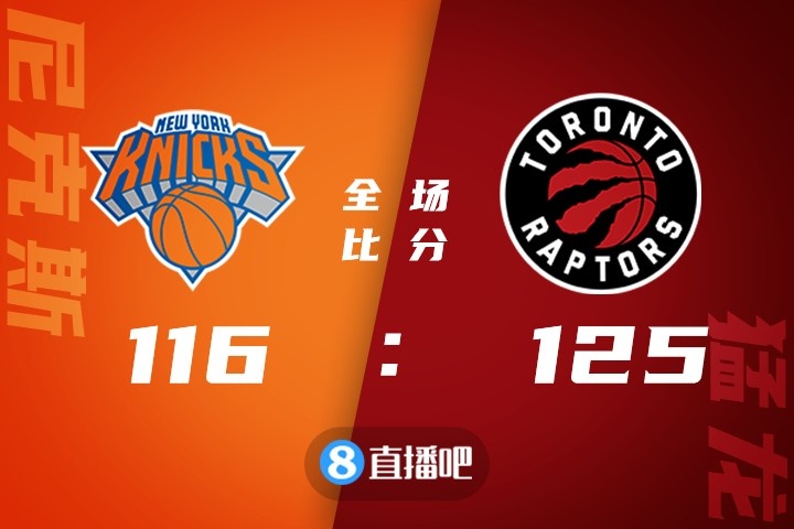 比赛开始,猛龙捍卫主场打得非常主动,特伦特外线手感火热,范弗里特里突外投也能连续得分,猛龙一波18-3的进攻波直接建立主动权,随后巴雷特和兰德尔终于找到状态,托平更是成为奇兵,次节独砍12分帮助尼克斯追至个位数分差。下半场,猛龙始终保持着10分左右领先,但第三节最后4分钟猛龙只拿到4分,尼克斯打出12-0进攻波一度反超比分,末节尼克斯突然断电,猛龙连续杀伤一波11-0重新建立起领先,随后猛龙牢牢掌握住双位数优势,最终猛龙125-116力克尼克斯,终止3连败同时送对手4连败。