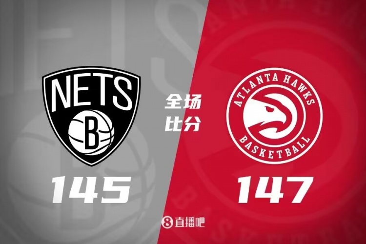 首节开始后布里奇斯联手丁威迪率队占优,特雷-杨单节三分7中6狂轰19分,亨特和萨迪克-贝续上火力,老鹰回敬13-0攻击波一举反超,首节结束时老鹰确立12分优势,次节回来,两队火力不减,老鹰稳扎稳打始终保持优势,半场战罢,老鹰依然领先10分。易边再战后篮网内外结合不断追分,中段多点开花的他们一度反超,老鹰及时复苏守住优势,三节结束后老鹰领先5分,末节上来,老鹰一波9-0确立优势,但布里奇斯突然爆发连得12分,末段卡梅隆-约翰逊补篮打进,特雷-杨造犯规两罚一中,布里奇斯绝杀不中后双方进入加时,加时鏖战,特雷-杨和穆雷轮番取分,布里奇斯联手丁威迪率队紧咬比分,决胜时刻布里奇斯连中后仰跳投,但特雷-杨连投带罚强势回应,奥孔武大帽布里奇斯,篮网追分未果,最终老鹰147-145险胜对手。