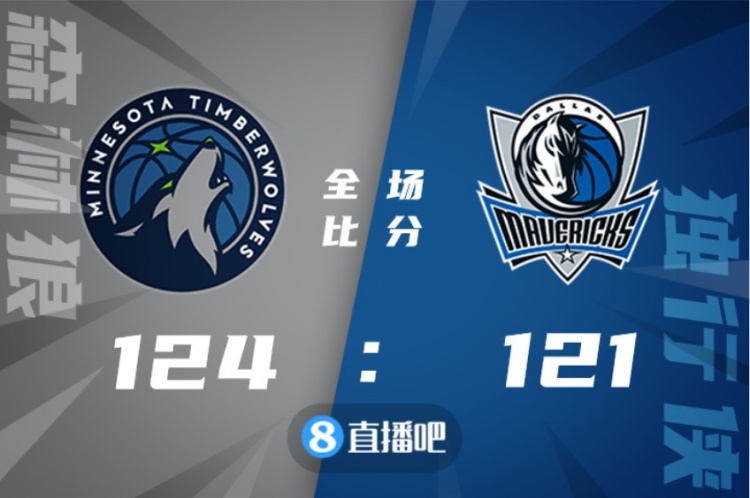 2月14日讯 NBA常规赛继续进行,独行侠主场迎战森林狼,独行侠目前31胜27负排在西部第4位,而森林狼则是30胜29负排在西部第8位。比赛上来双方展开对攻战,但欧文手感一般,只能靠东契奇独自撑起进攻,而爱德华兹和戈贝尔一内一外帮助森林狼直接建立起双位数领先,随后伍德成为替补奇兵,次节单节砍下18分,帮助独行侠咬住比分,而爱德华兹半场也是砍下22分,森林狼一直掌握住主动权。下半场,欧文还是没有找到手感,而森林狼则是全民皆兵将分差一度拉开至20分以上,东契奇和伍德苦苦得分支撑,末节欧文终于找回手感里突外投连砍23分,独行侠顺势追到差4分,麦克丹尼尔斯和康利关键罚球都两罚一中,但平森关键球被普林斯切掉,最终森林狼还是124-121险胜独行侠。