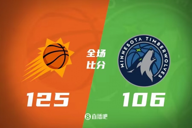比赛开始,太阳三巨头一人一个强势开局,随后太阳多点开花反客为主打出15-6不错开局,森林狼接连三分止血,杜兰特手感不错还是助队领先到双位数,比尔外线连续4记三分助队单节轰出44分一举领先到22分,次节太阳命中率有所下降,森林狼进攻端也状态一般,康利和沃克、里德接连3记三分追分,爱德华兹也冲击内线半场追到差13分。下半场,太阳上来10-1小高潮再次拉开比分,戈贝尔接连3个内线2+1连砍11分强势回应,森林狼顺势追至个位数分差,但太阳也回应继续领先11分,末节比尔杀疯了,联手阿伦接连外线发炮帮助太阳24-11重新拉开20分以上领先,随后双方替补练兵,最终太阳125-106轻取森林狼。