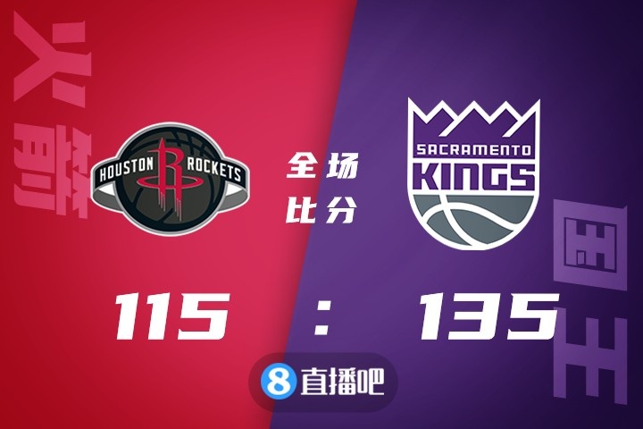 整个上半场两支球队就一直在比拼进攻,国王虽然多点开花占据主动但几度拉开比分却无法彻底打垮火箭,第二节中段国王一度送出16-6的攻势确立起12分的领先,但回头火箭连续外线开火迅速追上比分;不过火箭的防守端也是漏洞百出,而国王凭借4人得分上双带着5分领先进入下半场。休息归来国王前期一直占据主动奈何最后2分钟熄火,而火箭送出9-1的攻势实现反超。不过末节国王很快找回状态并用15-6的攻势夺回主动权,末段又以一波12-0的攻势锁定胜局。最终,国王主场击落火箭,并送火箭8连败。