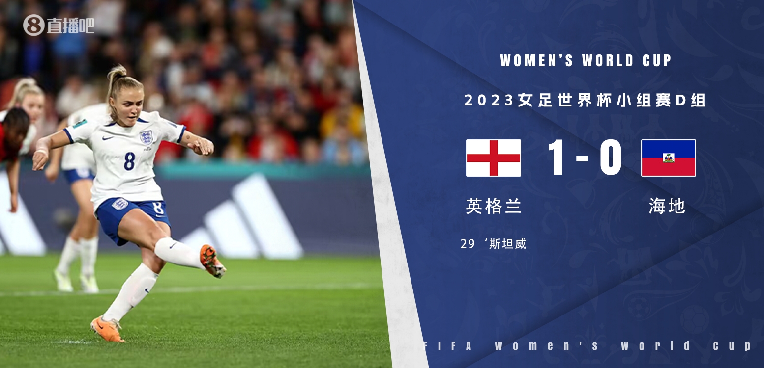 直播7月22日讯 北京时间7月22日下午17:30,女足世界杯D组首轮,英格兰女足对阵海地女足。上半场,斯坦威点射,利马热伤退。下半场,厄普斯神扑救主。全场结束,英格兰女足1-0海地女足,迎来开门红。