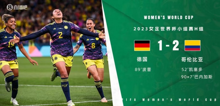 直播7月30日讯 北京时间7月30日下午17:30,女足世界杯H组第2轮,德国女足对阵哥伦比亚女足。上半场,拉米雷斯头球造威胁,波普错失良机。下半场,凯塞多弧线球破门,波普89分钟点射扳平,巴内加斯读秒绝杀。全场结束,德国女足1-2哥伦比亚女足。本场过后,哥伦比亚两战全胜排名榜首,德国积3分、凭借净胜球优势力压摩洛哥排名次席,韩国两战皆墨排名垫底。