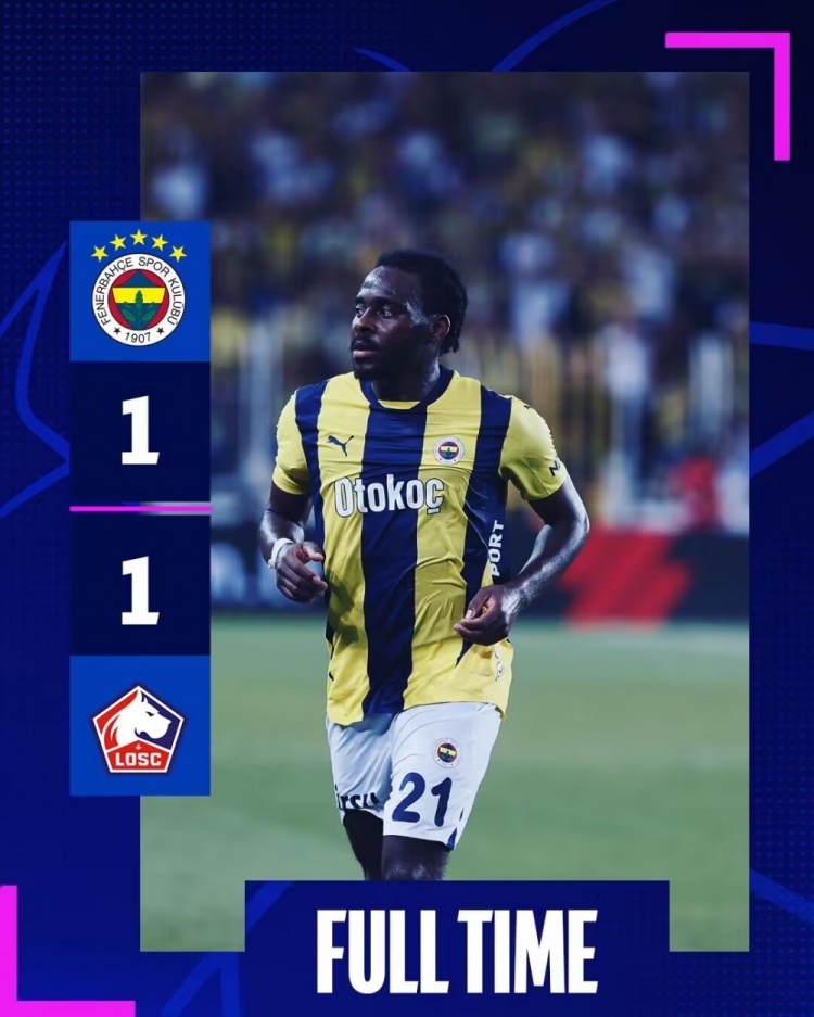 经过120分钟鏖战,费内巴切1-1战平里尔,最终费内巴切两回合总比分2-3不敌里尔。