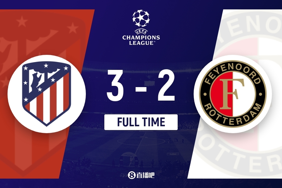 下半场补时5分钟,马竞3-2费耶诺德。