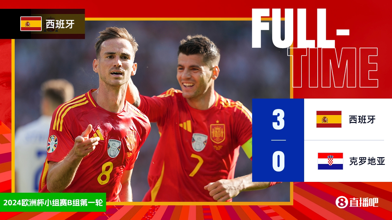 6月16日讯 北京时间6月16日凌晨0:00,欧洲杯小组赛B组第一轮,西班牙对阵克罗地亚。上半场西班牙在3分钟的时间里由法比安-鲁伊斯传射建功,莫拉塔单刀球破门,补时阶段亚马尔助攻,卡瓦哈尔收获国家队首球,西班牙暂3-0克罗地亚;下半场乌奈-西蒙送礼,禁区内罗德里补锅绊倒对手送点,佩特科维奇主罚点球罚丢,尽管他补射打进但佩里西奇提前进线,进球无效,最终西班牙3-0克罗地亚,收获本届欧洲杯开门红,暂居B组第一。本组下一轮西班牙将对阵意大利,克罗地亚对阵阿尔巴尼亚。