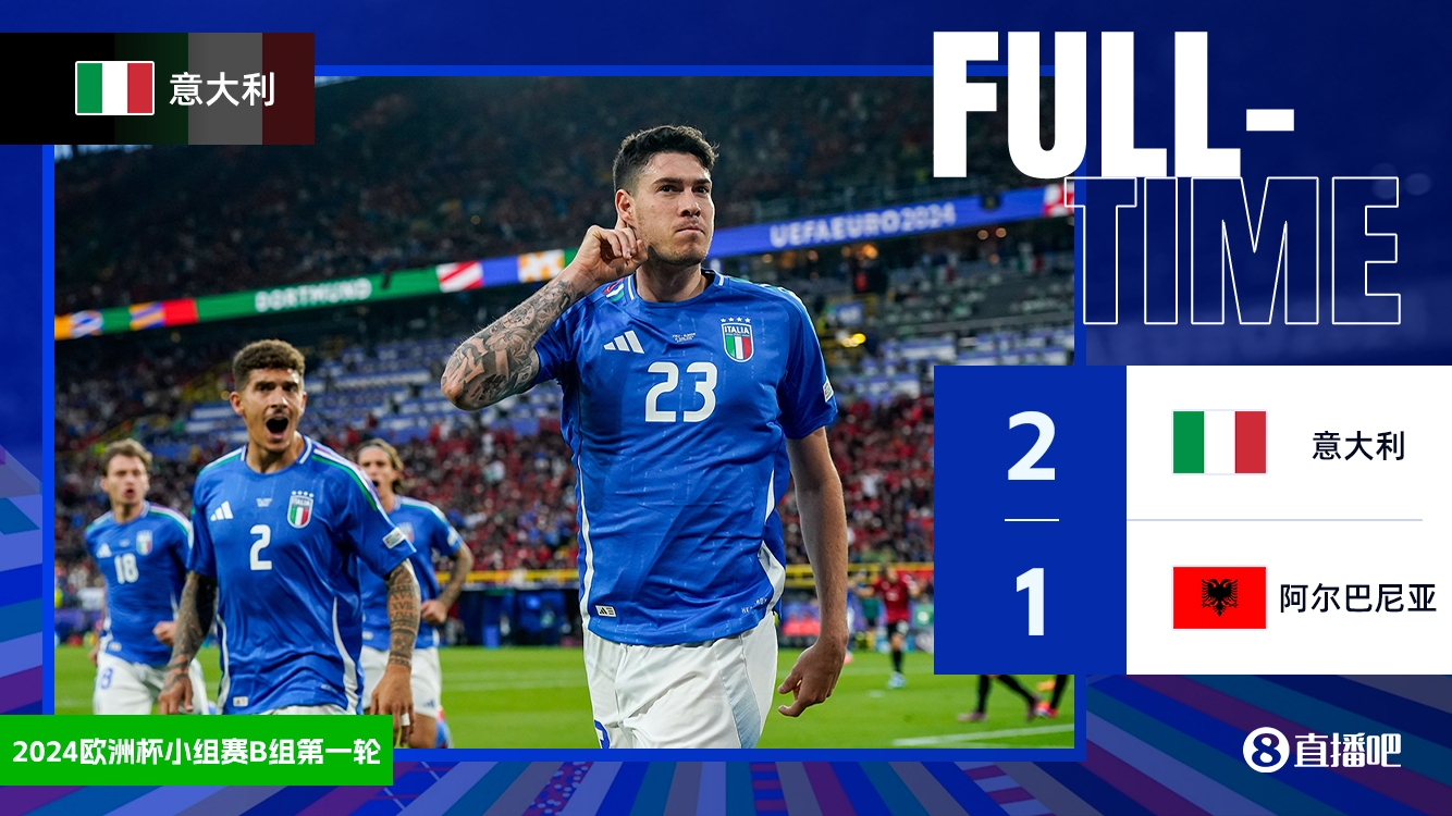 6月16日讯 北京时间3:00,欧洲杯小组赛B组第1轮,意大利对阵阿尔巴尼亚。上半场,开场仅23秒,迪马尔科界外球失误,送巴伊拉米创造欧洲杯历史最快进球!佩莱格里尼助攻巴斯托尼头球扳平;巴雷拉精彩抽射反超!弗拉泰西单刀挑射中柱。下半场,双方节奏放缓,并没有产生什么机会,最终卫冕冠军意大利2-1击败阿尔巴尼亚,取得本届欧洲杯开门红!小组积分榜上暂时排名第二。