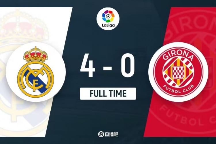 下半场没有伤停补时,最终皇马4-0赫罗纳。
