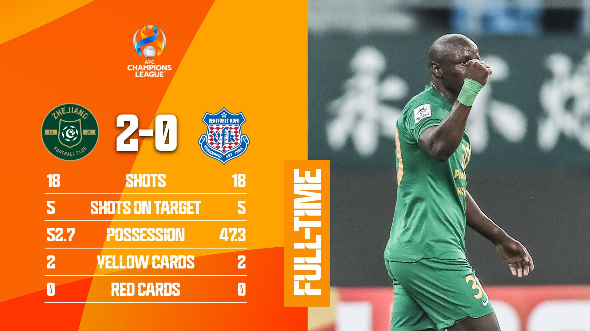 亚冠-浙江2-0甲府风林取首胜 卢卡斯穆谢奎建功赵博化解单刀