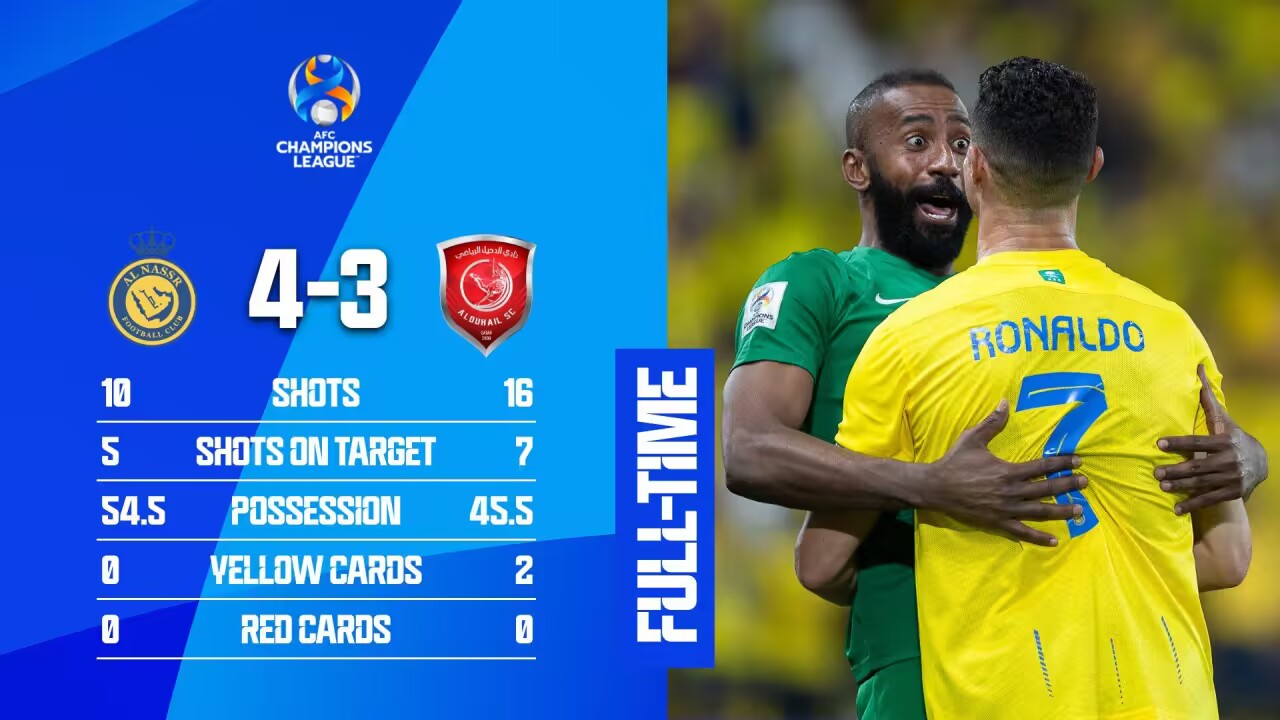 亚冠-C罗2射1传&13场14球+左脚世界波 利雅得胜利4-3杜海勒取3连胜