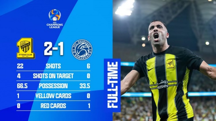 亚冠-吉达联合总比分2-1纳曼干新春进8强 本泽马头球乌龙+助攻