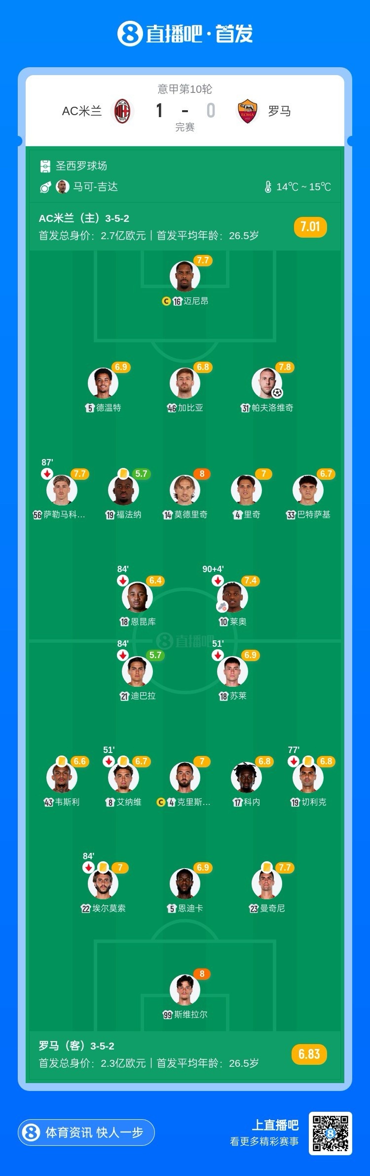 意甲-米兰1-0罗马升至第三 莱奥助攻帕夫洛维奇制胜球迪巴拉失点