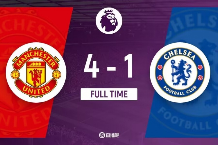下半场伤停补时4分钟,全场比赛结束,最终曼联4-1切尔西。